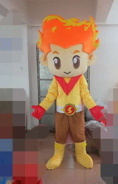 100% in kind shooting fire boy costume plush adult fire head mascot costume