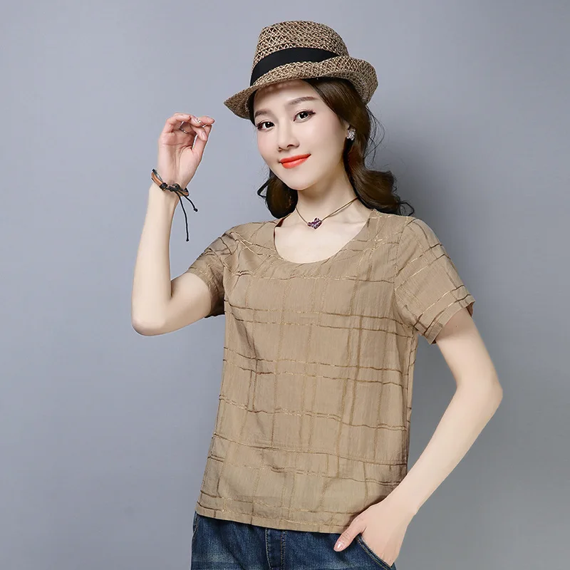 Photo Shoot 2019 Summer Cotton Linen Tops WOMEN'S Short Sleeved New Style Crew Neck Slimming Elegan